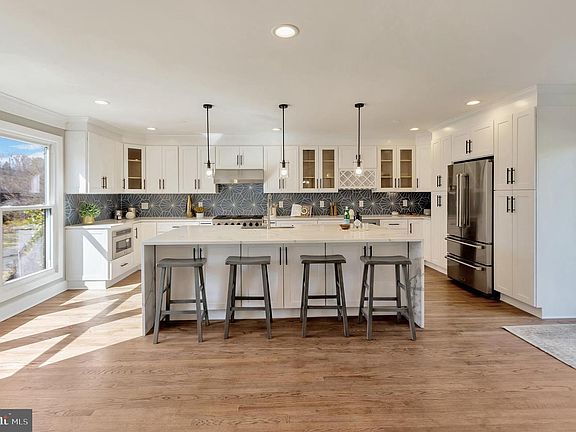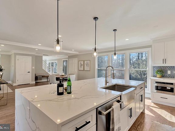 No showings until Thursday noon time, 03/31/2022 Sophisticated, top-to-bottom renovation of this sun-filled, 4-bedroom, 3-full-bath Colonial with contemporary interior on beautiful street of multi-million-dollar homes. The first floor, with an open floor plan, features a living room with floor-to-ceiling stone fireplace and dining room with oversized windows and backyard views. A stunning white kitchen with breakfast bar/ island has Cambria quartz countertops and top-of-the-line stainless appliances with floor-to-ceiling windows overlooking the backyard. There is a spacious eating area and sliding glass door to an expansive stone patio with serene, treed views - a perfect spot for warm-weather entertaining. Upstairs are three bedrooms and two full baths including a stunning owners' bedroom with sitting space, desk area, and luxury bath featuring grey tile, a double vanity, separate tub and frameless glass shower. The beautifully finished lower level offers additional living space and guest space. The family/rec room has luxury vinyl woodgrain tile; there is also a guest bedroom, full bath, and washer/dryer. A door leads to the 2-car garage. The exterior has also been fully renovated with fresh paint, new siding and new windows. Just off Goldsboro Road, this special home is only minutes to downtown Bethesda, Glen Echo, the Potomac, and an easy commute to Northern Virginia and downtown D.C.