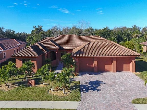 Welcome to your NEW 100% custom Spanish Hacienda style home! Upon arriving it???s apparent that you???re seeing something exceptional that NO ONE else has. From the custom paver driveway, humongous front courtyard, to the solid mahogany doors imported from Honduras your new home was built sparing NO expense. The home features travertine floors imported from Turkey, hand troweled and faux texturing from floor to ceiling with custom glazing and bull nosed corners, Loewen custom hurricane resistant windows, Grohe custom fixtures and Kohler sinks throughout, variable frequency drive HVAC systems keeping the 4,300sqft home at 74deg annually for UNDER $250, custom Bosch appliances and a Wolf gas stove that have never been used, SOLID WOOD cabinets throughout the home, custom arches throughout and a domed sitting area off of the kitchen with a window peering into your 4,000 bottle wine cellar with its own 1ton Daikin AC unit to keep your favorite wines and spirits at the perfect temperature. That???s just the tip of the iceberg! Savor your morning coffee on your palatial veranda with natural gas firepit and open-air kitchen ready for a custom pizza oven. All overlooking the Braden River where you can add in your own private boat dock. Rest easy knowing your privacy is protected with conservation area across the street from you on your cul-de-sac lot. Only a stones throw from the communities Olympic sized pool! Conveniently located off SR70 and I75 corridor you'll be home in no time! CALL TODAY BEFORE THIS IS GONE!