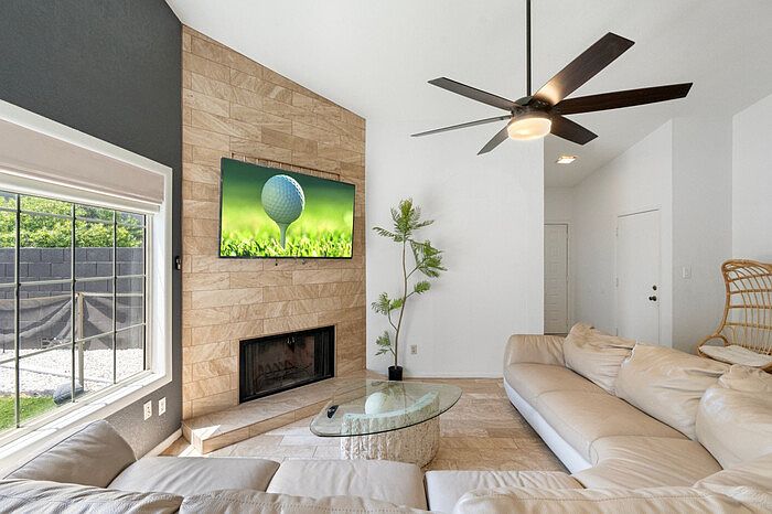 This property is a corporate rental. Please note that the monthly rental price for this property is dynamic and subject to seasonal adjustments. For an accurate quote, provide us with your intended move-in and move-out dates. This stunning single-family residence at 6914 E Phelps Rd, Scottsdale, offers the perfect blend of luxury and comfort. Step inside to discover a spacious 3-bedroom, 2-bath home nestled on a quiet cul-de-sac. The living/dining room boasts vaulted ceilings, stylish wood-look flooring, and a cozy fireplace, creating the perfect ambiance for gatherings. The gourmet kitchen features granite counters, wood shaker cabinets, SS appliances, and a convenient serving window. A sunroom provides additional living space, perfect for relaxation or entertainment. Retreat to the serene main bedroom with direct backyard access, a private bathroom with dual sinks, and a walk-in closet. Outside, you\'ll find a true outdoor paradise with an open patio, fire pit, charming ramada, putting green, and a sparkling pool. Parking is a breeze with a 2-car garage and additional spaces. Don\'t miss this opportunity to own a piece of paradise in Scottsdale\'s prestigious Greenbrier East community! Contact us to schedule a showing.