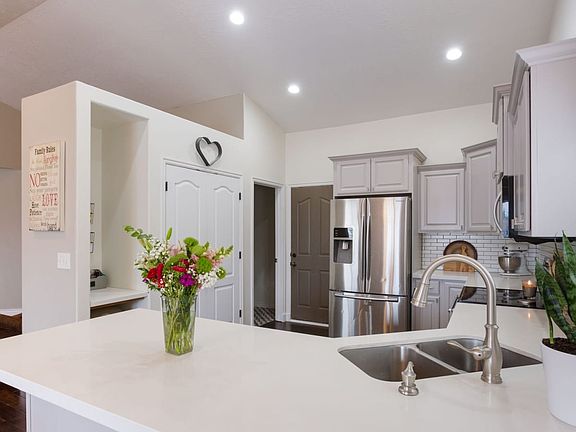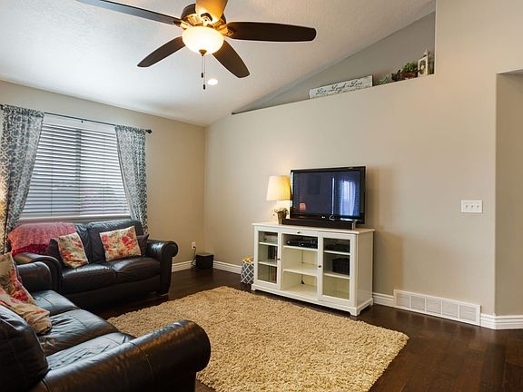 Large 6 bedroom and 3 bath rambler on a corner lot in the quiet neighborhood of Kiowa Valley. Kitchen boast new quartz counter tops with subway tile backsplash and deep sink. Two master bedroom closets. Bonus room above garage has a closet and own high efficiency air conditioning/heating unit making the space usable all year around. Large composite deck in back yard perfect for evening meals enjoying the beautiful views of the surrounding hillsides. Basement 90% complete. Easy access to I-15.