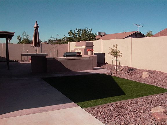 Beautiful Home in Pioneer Village subdivision . Near shopping , schools and parks. Home is spotless , up dated and available now! Back yard is perfect ! No maintenance yard, Equip with out door kitchen BBQ grill, umbrella , misters, grass that never needs watered or cut Large RV gate on side of home. Ceiling fans though out the home. Two tone paint. Tile floors , carpet only in Bedrooms. Garage has storage galore and finished floors. Fire place in living room. Flat screen TV mount above fire place. Flat screen TV mount in Master bedroom. Call office for more details. House has been remodeled inside and out. Has outdoor living with outside gas fireplace, big patio, built in gas BBQ island with a 4 ft. round tiled bar table. Has commercial grade copper mister system in back patio. Has very low maintenance front and backyard with automatic bubblier system, Malibu lighting, desert plants and no maintenance grass. Has large concrete 40 ft. RV parking on side of house with 10 ft. gates. Has sunscreens on every room. Windows are all covered with mini blinds. Has all the major appliances. Has large walk in pantry. Fireplace in family room. garage with cabinets on entire one side of wall and epoxy flooring. Has new higher seer A/C installed in 2011 and evaporate cooler. Close to Sundance Elementary School.No cats, no exotic pets. one small dog under 35 lbs only with owner approval. Pet deposit applies.One yr lease or longer. 45.00 application fee.