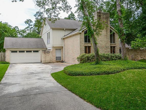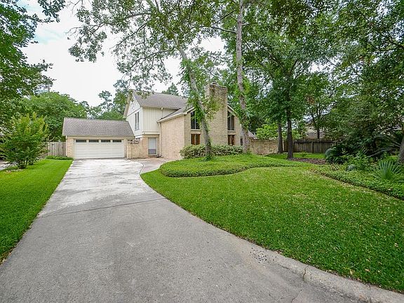 QUIET CUL DE SAC with mature trees, beautifully landscaped home - Private master suite down, mstr bth w/great built-ins plus two walk in closets; Tub/shower. Gorgeous kitchen w/new cabinets and desk; gas stove; granite counters. Pull out shelving in the corners make full use of all space in the kitchen! Two story living area w/ warm wood paneling, flagstone fireplace framed by floor to ceiling windows. Great layout with wet bar & adjacent dining room. Second floor game room overlooks the den w/ custom shelves. 2 secondary bedrooms upstairs with an extra room off of one of the bedrooms. **NO FLOODING** This Beautiful Home is a MUST SEE