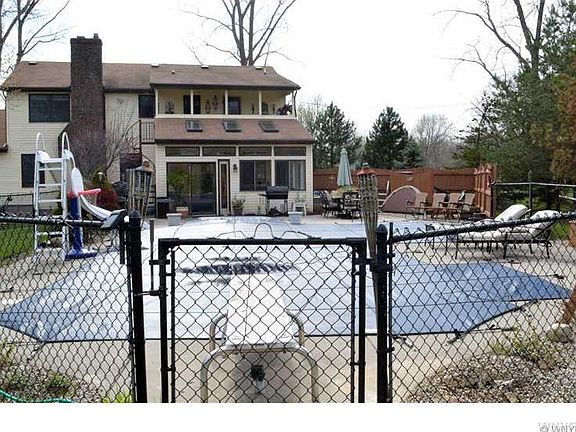 Stunning 4 bdrm, 2.5 bath, brick & stucco front Tudor w/2 car attached & 2 car detached garage on 1.5 acres. 40x24 ft IG pool, w/lg concrete patio backing up to woods. Front door leads to spacious LR & formal DR w/new Pella windows. Newly remodeled kitchen w/granite counters & ceramic floor overlooking bright 3 season sunroom w/stone floor & skylights. FR boasts gas fplc & wetbar. 1st floor laundry. Lg master bedroom & master bath lead to private balcony overseeing gorgeous back yard. Newer roof & fruit baring trees.