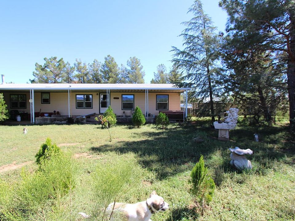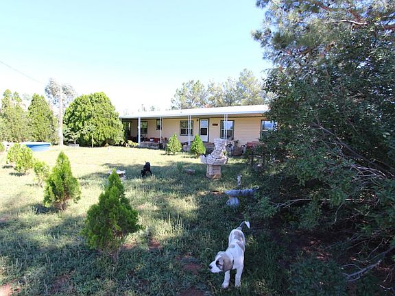 Enjoy the panoramic views on this 4 acre parcel with ample space for horses! Split 4 bedroom / 2 bath manufactured home with two covered patios. You will have plenty of storage space between the detached 2 car garage with room on the second level and several storage buildings. Do not let this one slip by.