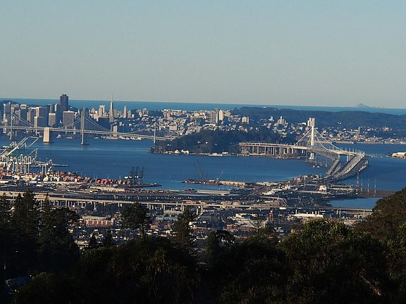 NEW LOW PRICE. RESIDE IN THE MASTER BEDROOM OF THIS AWESOME, FULLY FURNISHED, LUXURY $2+MM, APPROX. 3,000 SQ. FT. HOME; AVAILABLE NOW! SPECTACULAR PANORAMIC VIEWS of Oakland and San Francsico, both Bay and Golden Gate Bridges, Alameda, Alcatraz, Marin, the Peninsula, and Treasure Island! Gorgeous Sunsets!! Expansive Green-Belt Area Will Never be Built Out BEDROOM 101 is very large (approx. 500 square feet), is fully furnished, with a King-sized Bed, two Bedside Tables and Lamps, and a large Dresser. It has a large Private, Ensuite Bathroom, with twin "His and Her" Sinks, a Jacuzzi Tub, and separate Shower Enclosure. There is also a large Private, Walk-in Closet with plenty of Clothes-Hanging Space and additional Shelving for Storage. There is a Ceiling Fan for cooling in summer. Features a Private Balcony, including its own Bar-Height Patio Table and Two Chairs, with Spectacular Views of Alameda, Oakland, and San Francisco (including both SF Bridges). My TWO-STORY and SECURE LUXURY HOME is located on a discreet and semi-private street off Skyline Boulevard in the Oakland Hills. With four Bedrooms and three Bathrooms, you will be residing with a maximum of Two other Tenants. THE MAIN LEVEL features an open Floorplan; a Custom, Gourmet Kitchen with Island, ALL Stainless-steel Appliances and Granite Counter-tops, professional (Gas) Viking Stove, and walk-in Pantry; a gorgeous custom Marble Dining Table and chairs; a Marble (Gas) Fireplace, and stylish Artwork throughout. With Travertine-tiled floors throughout (in the Entry Foyer, Dining, Family, Kitchen, and Living rooms, and the Bathroom and Laundry areas), while both (furnished) Bedrooms, the Hallway and both the internal Spiral Staircases, on this level are Carpeted. ALSO FEATURED on the MAIN Level are a (shared) full Bathroom; a complete Laundry with full-sized Washer and Dryer, and Sink; a 65" LCD Smart TV and DVR, and a Large Deck with a Bar-Height Patio Table and Chairs, and a Weber Gas BBQ. The Deck also has a large 18' Electric Retractable Awning, which provides shade for comfortable relaxing while taking in the spectacular views. THE LOWER LEVEL has two Large Ensuite Bedrooms with Private Bathrooms. The Master Bedroom ("Bedroom 101") is available NOW for Rent see below. I reserve "Bedroom 102" for me, for when I am there :) "BEDROOM 101" for Rent, is competitively priced at $1,799- per Month. SPECIAL: 10% Discount off First Month's Rent for Six-month or Longer Lease.