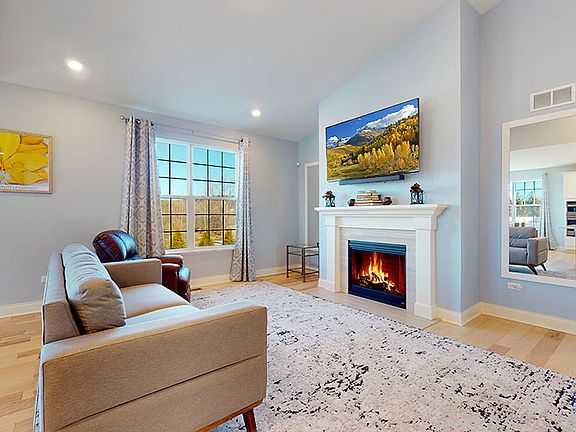 Built in 2021, and shows like a model, because it was designed just like the Model! This ranch Siena Model, has barely been lived in and has many upgrades and features including a fireplace, vaulted ceilings, a brick front exterior and a 3 car garage. Additional features were added after the purchase and include, a whole home generator, concrete back patio, sprinkler system, invisible fence and a carpeted basement! This house has with all the bells and whistles, you wont be disappointed!! The Siena ranch floor plan is home to three bedrooms, two bathrooms, & an attached three-car garage. The moment you enter this luxurious home, your eyes will be drawn directly to the spectacular family room. This ideal gathering area opens to the fully-equipped kitchen and dining area. The kitchen features a breakfast dining area, Quartz counter tops, an over-sized island with overhang, a spacious pantry, as well as all stainless-steel appliances including the refrigerator, gas range, dishwasher & microwave. The owner's suite includes a luxurious private bathroom that features a walk-in shower, private water closet & double-bowl vanity that conveniently adjoins a walk-in closet. WIFI in every room with no dead spots, Schlage lock, Ring video doorbell, Honeywell-WIFI thermostat. This home sits on a premium corner lot with no back neighbors! Legend Lakes has 3 parks, walking paths, baseball fields, basketball court and soccer fields as well as many ponds to enjoy all year long and piece of mind with a fire station right in the subdivision!
