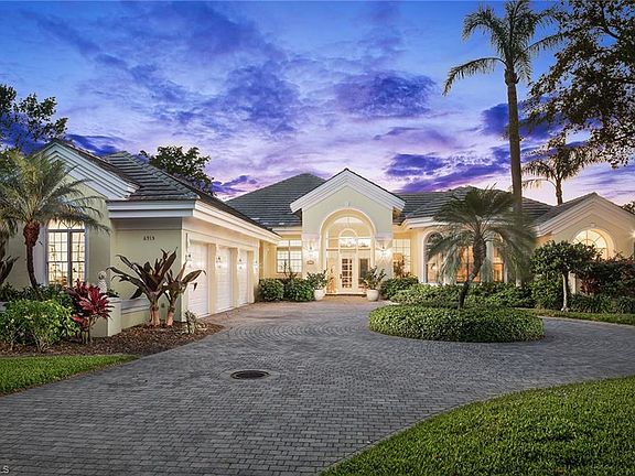 Absolutely the most beautiful setting you will see in Pelican Bay. Sweeping views of the lake and the second hole of the Bay Course. 0.51 acres. This home was built in 1992 with foresight: the ceilings are 12 to 14 feet high in the main living areas, 9-foot ceilings in the bedrooms, open floor plan, three bedrooms, a den and four full baths in the main home plus two bedrooms, a kitchen and full bath in the guesthouse, three-car garage. Sit by the pool or on the covered veranda overlooking the lake and watch the beautiful sunsets. Light and bright house. The kitchen features a gas cooktop, stainless steel appliances and green granite countertops and a walk-in pantry. Sunken bar in the family room with sink and refrigerator. Two new AC units in 2020 and the third in 2022. Enjoy all that Pelican Bay has to offer: almost three miles of private beach, two beach restaurants (destroyed by Hurricane Ian and being rebuilt). Two tennis centers, a state-of-the-art fitness center, bike and walking paths, kayaks and canoes.