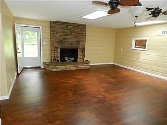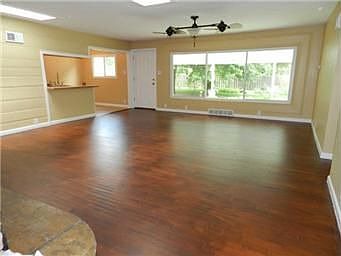 BEAUTIFUL TWO BEDROOM RANCH in lovely quiet area close to Metcalf & I-35. Features VINYL siding & REPLACEMENTwindows, HARDWOODS, STONE fireplace, NEW bath, Large covered Patio, Super Sized 2 car garage w/cabinets & FULL Basement. Almost half acre fenced yard with delightful gardens! Call & See Today!