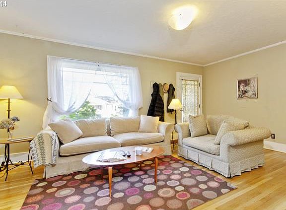Beautiful Cape Cod bungalow located blocks from the bluff and New Seasons. The house has charming details such as tiled bath and wood trim. It features a full basement, new roof, recently refinished hardwood floors, newer furnace and hot water heater. The fully fenced, park like backyard features mature plants trees, large shed and a street-to-street for maximum privacy. The detached garage with an automatic door is located on N. Curtis