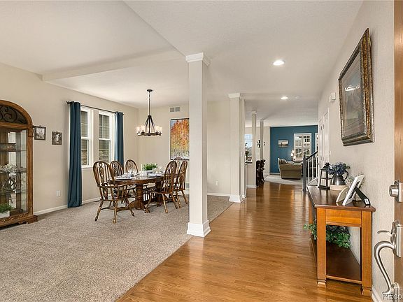 Enjoy expansive views from Pikes Peak to Longs Peak from this recently remodeled home in Tallyn's Reach! This home is an excellent value with nearly 4,000 finished square feet, many recent upgrades, and a 3-car garage! Be welcomed into the formal entry open to spacious living and dining rooms. Follow the beautifully refinished hardwood floors to the upgraded kitchen featuring white cabinets, granite countertops, and contrasting island for a designer finish. Relax in the large family room open to the kitchen or enjoy the sunsets over the front range from your back deck. This home features shutters in the family room, sliding patio doors with internal blinds, beautiful built-ins in the main floor office, and large laundry room. Upstairs you will find a spacious master suite with peak to peak views and a large walk-in closet. Three additional bedrooms with their own walk-in closets and another full bathroom complete the upper floor. The finished basement is another great space for entertaining or recreation with a large open great room, a fifth bedroom, and two unfinished storage spaces. This home has also had the interior recently painted and has a six-year-old class 4 impact resistant roof with transferable lifetime warranty. Additional features include a hot water heater that is only two years old, recently installed carpet, and upgraded windows. Enjoy spending more time at home in your huge backyard featuring brick pavers, large grass area, or from the recently built Timber-tech deck. You can also enjoy living in one of the most desirable locations being within the Cherry Creek School District, 5 minutes to Southlands, 18 minutes to DTC, 25-30 minutes to DIA & Denver, and 2-3 hours from 8 of Colorado's best ski resorts. The floor plan, upgrades, and location of this unique property offer you the lifestyle you have been dreaming about.