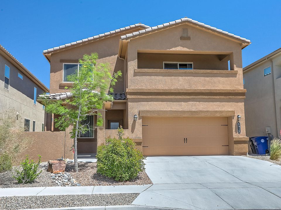 Gorgeous like new DR Horton ''Roark'', upgrades everywhere you look! Squeaky clean inside and out, ready for you to come and make it yours. Granite/Stainless in the kitchen, with island, pantry, upgraded cabinetry! Lovely master with private balcony! ''Silver'' rated home under Build Green NM guidelines for energy efficiency. Tankless water heater and 2x6 construction. Downstairs, could be one living room + den/office, or 2 living areas. Home is Here!!