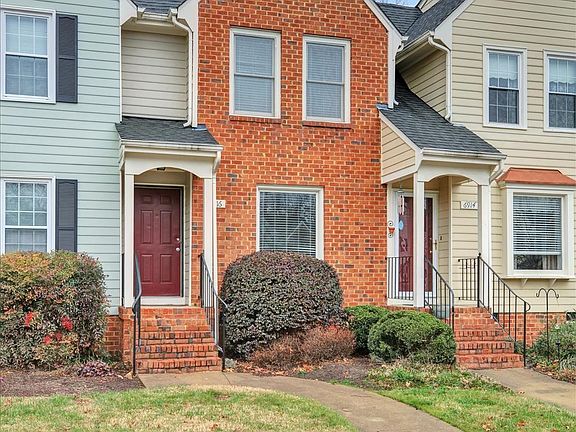 Welcome to 6916 E Fox Green in the Branch's Trace Townhouse Community. This move-in ready townhouse consists of 2 bedrooms & 1.5 bathrooms on 1,008 sqft of living space. The first floor features an eat-in kitchen with vinyl floors, ample cabinet storage & all appliances conveying to the next owner. This level is completed with a large great room featuring a wood burning fireplace & patio doors that walk-out to the rear patio and HOA maintained yard/green space. The second floor has 2 carpeted bedrooms with a shared full bathroom. Low HOA dues cover exterior maintenance and also included is trash pick up twice a week & recycling once a week. Centrally located with easy access to shopping & restaurants with convenient commutes to Richmond & the tri-cities via quick access to all major interstates.