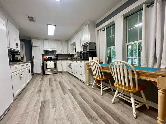 MOVE IN READY spacious 3BR/2.5BA fully updated ranch style home with ramp access sits on a half acre corner lot with a fully fenced back yard boasting an oversized shop with electricity and additional xxsqft of covered parking. Sit outside under the pergola and enjoy the stars or enjoy so much nature right from the massive oversized covered back porch. Inside you'll find an open floor plan with brand new LVP flooring (installed July 2024) throughout the home and tiled bathrooms. The kitchen was completely updated summer of '21, the secondary bathroom has been updated to included reglazing of the cast iron tub and more. The primary bathroom has been updated as well to include an oversized jacuzzi tub and new subway tile. Other updates include but are not limited to: Gutters - May of 2024, both water heaters replaced - 2022, Roof replaced - 2018 or 2019, new HVAC with gas heat - 2021, Attic insulation - fall of 2023, and the water lines to the home were replaced in 2013 with freeze resistant lines.