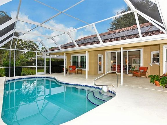 - Pool features: Gunite, Heated, In Ground, Screen Enclosure, Solar Heat, Outside Bath Access, Pool Sweep