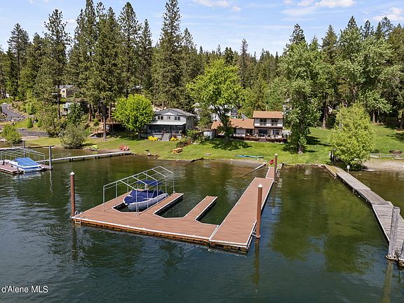 Discover Your Dream Waterfront Retreat! *Location, Location, Location* Nestled in the heart of Rockford Bay, this stunning 5-bedroom home offers the perfect blend of serenity and convenience. Unparalleled Waterfront Access: With nearly 100 feet of south-facing frontage, enjoy a gentle slope leading directly to the water's edge, complete with a picturesque beach area and lush grassy lawn. **Exceptional Dock Amenities**. The nearly 100' of frontage is south facing with a low slope to the water's edge. It has its own private boat launch. Extensive recent remodeling includes: new kitchen and bathrooms, new heating and ac, new septic, and rebuilt dock. The dock is one of the largest legal docks on the lake and couldn't be done today. The sellers spent $75,000 rehabilitating the amazing double boat slip dock. Located just down the road from Black Rock Golf Course & Cda National. If you've been searching for the perfect waterfront property for a lifetime of memories to be made, act now!!