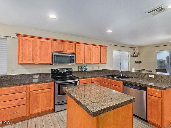 Welcome to your move-in-ready oasis nestled in the desirable community of Hillcrest Ranch. This 3-beds, 2.5-bath home boasts solid wood updated kitchen cabinets, granite counters, a kitchen island & a breakfast bar, creating a stylish & functional culinary space. Enjoy the comfort of ceiling fans throughout the house & the warmth of a wood-burning fireplace in the living area. The convenience extends w/ included appliances—washer, dryer & refrigerator. Experience privacy w/ no neighbors to the backyard, providing a serene retreat. This residence offers more than just a beautiful home; it's conveniently located to abundant entertainment options, including golfing, hiking, shopping, & resto's—all just minutes away. Schools are w/in walking distance & the Thunderbird Medical Center is a mere 12 miles away, adding practicality to the charm of this Glendale haven. Embrace the perfect blend of comfort, style & accessibility in this Hillcrest Ranch gem!