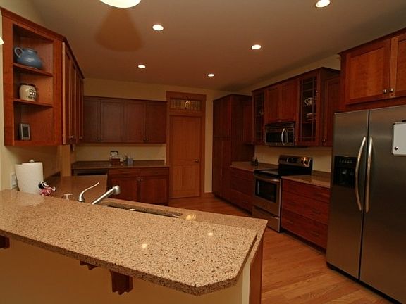 Spectacular custom arts & crafts ranch adjacent to 115 acre Door Creek Park. Open living with all tile & hardwood floors on main level. Large square trim, 4 panel mission doors, stained glass transoms. Expansive kitchen & laundry. Tile master shower, cast iron/porcelain tubs & tile surrounds in all baths. Open railing to lower level that boasts wet bar, built in entertainment area, wine cellar, bedroom & bath. Stairs from finished oversized garage to lower level.