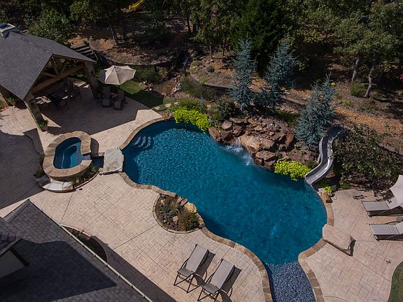 ENJOY LUXURY RESORT LIVING RIGHT AT HOME IN THIS BEAUTIFULLY REMODELED GEM, WITH INCREDIBLE OUTDOOR LIVING AREA & GORGEOUS VIEWS TO THE TREE LINED OASIS. SPEND FAMILY TIME IN THE GAME ROOM OR THE THEATER ROOM WHICH OPENS TO A COVERED BALCONY WITH STAIRWAY LEADING TO LARGE TIMBER-FRAME PAVILION WITH MASONRY FIREPLACE, FANTASTIC OUTDOOR KITCHEN & INCREDIBLE POOL WITH 2 WATERFALLS, DIVING ROCK, SPA, SLIDE & SUN BATHING PLATFORM. LANDSCAPING INCLUDES A FOOT BRIDGE & 3RD WATERFALL WHICH LEADS TO THE WATER FEATURE POND. A PERSONAL HOME GYM IS READY FOR YOUR WORK-OUT. THE MASTER SUITE OPENS TO A COVERED PATIO & THE GUEST SUITE IS CONVENIENTLY LOCATED DOWNSTAIRS. A LARGE BREEZEWAY OFFERS ADDITIONAL OUTDOOR GATHERING SPACE. WONDERFUL WORKSHOP SPACE WITH SLAT WALLS & EPOXY COATED GARAGE FLOORS.