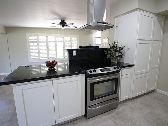 This elegant fully remodeled home will truly take your breath away! Brand new high efficiency windows entire house, modern 12x24 porcelain tile throughout whole house, freshly painted interior and exterior. Gorgeous big and bright kitchen has black pearl granite counter tops, shaker style cabinets and high end stainless steel appliances, plenty of cabinet space and a pantry. Both bathrooms have new vanity with quartz counter tops, custom master shower with Italian stones mosaic tile. Mountain view back yard is fully custom landscaped and has patio paving stones and custom iron gate. Wood plantation shutters complete impressive design of this house! Come See Today!!
