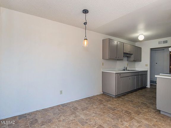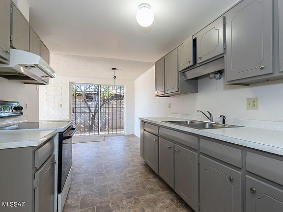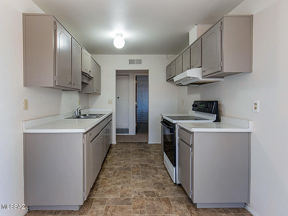 * Estate Sale. Back on market! Move in ready and well maintained. This sharp updated 4BR/2BA feels roomy and boasts modern updating throughout. Large living room. Galley style kitchen with beautiful painted cabinetry, updated bathrooms, new flooring, freshly painted interior, reconditioned roof under warranty, newer (2018) high energy efficient Lennox HVAC system. Large walled-in north facing rear yard with covered patio. Large bonus room perfect for workshop, storage, etc. Very convenient location. Close to DMAFB, Fred Enke Golf Course, Pima Community College East, etc.Estate Sale. Please write in offer No SPDS or Clue Report in your offer. See attached documents for copy of roof warranty, termite warranty and invoice from Carpet One for new flooring. See agent only remarks.