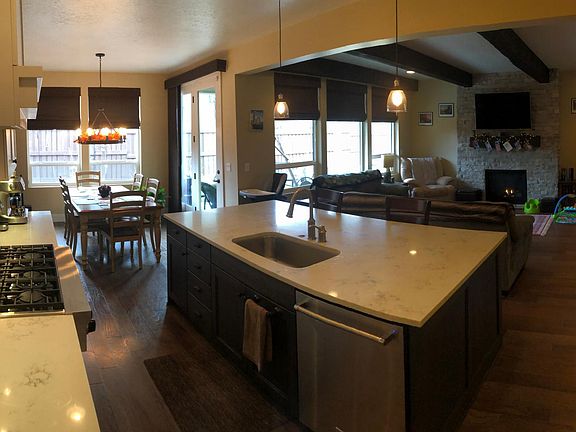 NOW AVAILABLE APRIL 13th. Built in 2017, this open floor plan home has beautiful hardwood floors, quartz counter tops in the kitchen and all baths, and has a large fully fenced backyard. Rent includes HOA, lawn mow/edge, gardening, fertilizer, HVAC/fridge filters, fireplace cleaning fees, and HVAC cleaning fees, plus much more (listed below). The family room features beautiful dark brown ceiling beams, and a magnificent ceiling-height stacked-stone gas fireplace! Above the mantle is a TV mount, which can hold up to an 80" flat panel TV, with access to power and HDMI/coax cables behind it. Also included are LED dimmer can-lights. The kitchen, with stainless steel appliances, includes a 6-burner gas stove and a large island with breakfast bar that overlooks the family room. The large pantry features 4 outlets for small appliances. The kitchen also opens to the dining room, with lots of natural light from large windows and the glass door leading to the covered patio. A hall off the kitchen includes a built-in tech corner with desk and cabinets, and leads to the guest bedroom with en suite bathroom and walk-in closet. Upstairs, the huge master bedroom has a tray ceiling and overlooks the backyard through an enormous window. The lights are controlled by a smart dimmer switch, which can be adjusted manually or by voice through your paired Bluetooth device. The master bath has double counters and sinks, a large tiled walk-in shower with a bench, a toilet room, plenty of storage space, and a walk-in closet. Conveniently across the hall is the large laundry room with sink, cabinets, and clothes hanging rods. The 3 remaining bedrooms are also upstairs, all with mountain views! The upstairs hall bath features an oval tub/shower, and 2 sinks with a 6.5 ft long counter! Throughout the home, you ll find custom Roman shades, LED lighting, an abundance of closet/storage space, extra wide 4-5 ft hallways, and tall 9 ft ceilings. The downstairs features beautiful dark hardwood floors, all bathrooms are tile, and bedrooms are plush carpet. HVAC is custom dual zone with the downstairs controlled by a smart/WiFi thermostat and the upstairs by a second thermostat. The heating system also includes an integrated steam humidifier controlled by the smart thermostat for comfort in the dry winters. The 3-car garage boasts lots of ceiling mounted storage, a 240V/30A outlet, and a custom epoxy floor, which is easy to clean and won t stain. Outside, the lawn is one of the biggest in the neighborhood and is surrounded by a 6 ft cedar privacy fence. The sprinklers are automatic with a wireless weather sensor that adjusts water use based on temperature, sunlight, and water fall. The East Valley planned community sits in highly rated school districts, has a playground, and there are many kids of all ages here. Everyone is welcome to the roughly monthly social gatherings, as well. The neighborhood is situated for quick access (600 ft) to the Green Belt, a half mile from the trailhead with access to the foothills trail system, and a gravel path along the mountain base that connects the local neighborhoods. The location also provides quick access to I-84, and low-traffic routing to downtown via Warm Springs. Property managed by owner with home warranty that includes 24-hr emergency maintenance number, included in cost of rent. Washing machine, dryer, and refrigerator are included. In addition to the services/supplies in the first paragraph, rental costs also include annual sprinkler blowout, sprinkler backflow testing, washing machine cleaning supplies, two fire extinguishers, batteries (for garage door openers, rain sensor, CO & smoke detectors), and a home repair kit for floor scuffs and wall dings. We do request you leave the in-ground sprinkler system turned on during the summer (April through September, inclusive). Email us for more pictures/details! Work reference and one-time credit check (performed by third party) for landlord required that will not affect credit history; refundable should perspective renter be declined. Renter pays for utilities. Owner pays for HOA, home warranty/insurance, property taxes, lawn cut/edge, gardening, fertilizer, sprinkler blow-out, sprinkler back-flow testing, HVAC air filters, HVAC humidifier cylinders, fridge water filters, smoke detector/garage opener/weather sensor batteries, fireplace cleaning, and HVAC cleaning