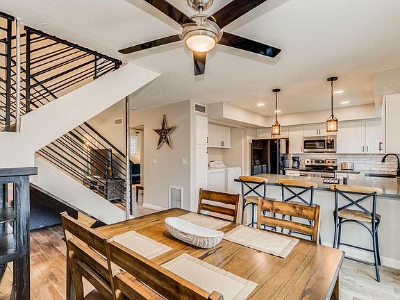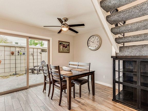 Mid-century charmer is private, spacious, cozy, and renovated. Large pool was recently renovated and a very short walk from property. Townhome features 3 beautiful bedrooms, 3 FULL baths, designated workspace with desk and wireless internet. Remodeled kitchen features extra quartz counter space for meal prep, baking and mixing libations for your family and guests. Bathrooms are renovated, clean and spacious. Minutes from Old Town Scottsdale restaurants, shops, bars, and Scottsdale stadium. Sleeps 8. Convertible sofa in Office Space for 9th guest. Dining for 9 guests! 2 Covered Parking Spots behind patio! Lic:2024172 All utilities included!