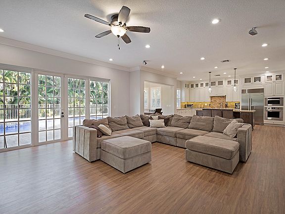 Custom closets and storage are strategically placed to make organization a pleasure. The laundry room looks like its straight out of a magazine and includes a utility sink and counter space. Plus, the 3-car garage offers raised storage space, cabinets and a huge workspace big enough for any DIY project. Generator hookup is also in the garage and the generator is negotiable. A security alarm system is wired throughout the house as well as hurricane impact windows and doors.