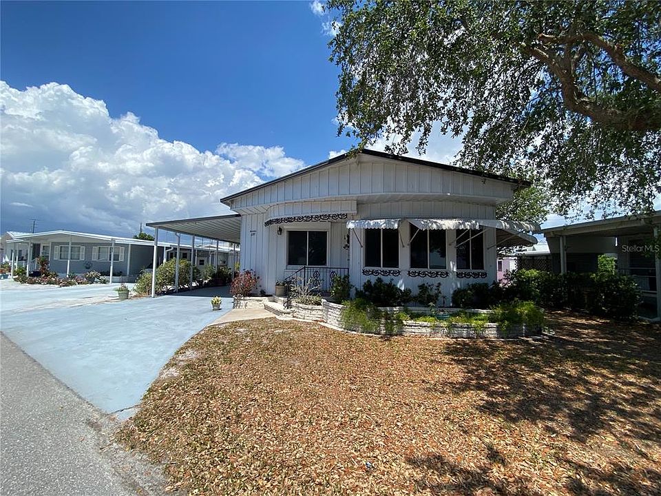 Just reduced! Fabulous opportunity to own a little slice of paradise at an amazing price with a bay view and marina with boat slips! Welcome to Trailer Estates. This is a wonderful 55+, land owned manufactured home community with amenities galore! Take a walk back in time when you enter this vintage 1968 double-wide mobile home with carport. Enjoy bay views and cool breezes from the main living area. Home features 2 bedrooms and 2 baths, a 1 car carport, new central heat and a/c system in Aug. of 2020, and an indoor utility room with full size washer and dryer. Update this spacious older home or put a brand new mobile home on this parcel which is situated on a lot and a half. Amenities include: heated pool and jacuzzi, marina, kayaking, community park, exercise room, billiards, shuffleboard, bocci ball, woodworking shop, community rooms for arts and crafts, card games, pickleball and so much more! Community also has it's own post office and fire and rescue dept. Convenient location to shops, restaurants and airport. Don't miss this unique opportunity!