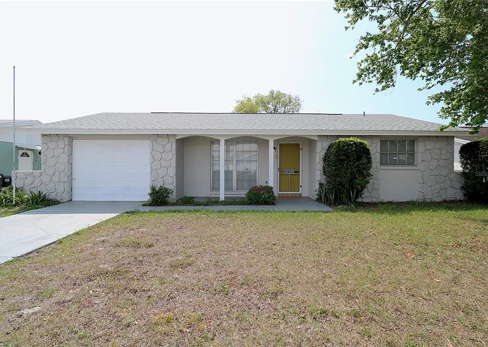DON'T LET THIS ONE PASS YOU BUY! Make sure to come out and see this beautiful 2 bedroom and 2 bathroom home. You will notice the home has been freshly painted on the inside and outside. As you walk into the front door you will notice updated laminate floors throughout. You have a formal living room in the front of the home that leads to your completely updated kitchen cabinets and counters as well as the stainless steel appliances and a breakfast bar that looks out to your family room. The family room is nice and bright. You will find two bedrooms and an updated bathroom. The second Full bathroom is located in the garage. Next we make way to your screened in porch area which is great for enjoying the beautiful Florida weather. Don't miss your chance to see this home today! Price reflects an appraisal done by seller prior to going on the market. NEW ROOF 2023 NEWLY PAINTED INSIDE & OUT. "THIS INCLUDES GARAGE, GARAGE BATH, & LANAI NEW VERTICAL BLINDS THROUGHOUT, & BEDROOM BLINDS NEW GARBAGE DISPOSAL NEW SMART LOCK ON HOME NEW FLOORING THROUGHOUT ALL NEW CEILING FANS WITH LIGHTS & REMOTE CONTROLS FOR EACH ROOM ALL NEW KITCHEN; CABINETS, GRANITE COUNTERTOPS, STAINLESS STEEL SINK, ALL APPLIANCES NEW MODERN CEILING LIGHT ALL NEW INDOOR BATHROOM; ALL TILE ON WALLS, BATHTUB, TOILET, SINK VANITY, MIRROR & FAUCETS ON SINK, & IN SHOWER