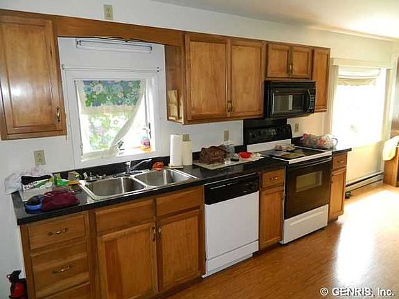Charming ranch style home just outside the Village of Bath! This home features an updated kitchen with newer flooring, replacement windows, woodburning fireplace, and a remodeled bathroom. Plenty of space for storage in the 1.5 car garage with attached workshop and shed! 2 bedrooms and 1 full bathroom all on one level! Relax in the enclosed porch facing the backyard gardens on this 1/2 acre lot. Home also features central air. It is a must see!