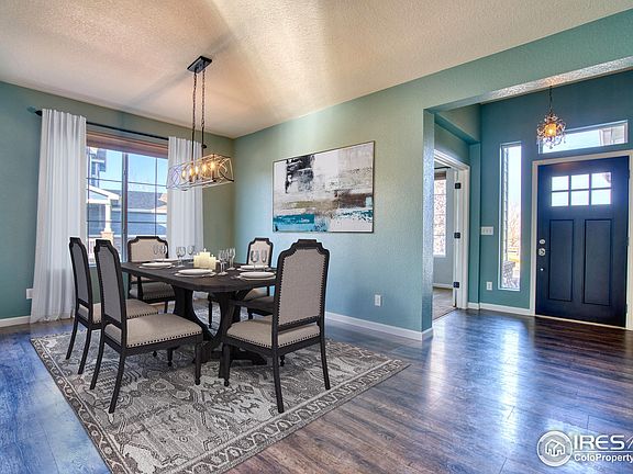 Impressive 2-story home on over 1/4 acre that is beautifully and extensively xeriscaped, requiring minimal maintenance. Inside you will be delighted to find a gourmet's kitchen, open to the spacious and sunny great room with gas fireplace, perfect for entertaining. Kitchen has granite countertops and island has a large sink, Bosch dishwasher and breakfast bar; enjoy the double-oven, gas range with hood, large walk-in pantry and butler's pantry/coffee bar. Adjacent to the kitchen is the flexible formal dining room. Engineered hardwood flows throughout nearly all of the main level. Just inside the entry is a large office with French doors and a powder bath across the hall. You will spend countless hours outdoors relaxing under the pergola on the concrete patio, within soothing sight and sound of the water feature, and natural beauty of terraced stone slabs; additional benefits are the convenience of artificial turf, concrete and gravel paths, mature evergreen and deciduous trees. The owner's suite has a tray ceiling, 6-piece bathroom with separate vanities and a double-shower, plus a huge walk-in closet. Rounding off the 2nd level are 3 large secondary bedrooms with a private guest-access bathroom. Sunny southern exposure makes for nice bright daylight in the rooms on both levels. Amazing 4-car garage, fully insulated and drywalled. Just 3-wood distance to Saddleback Golf Course and The Tavern restaurant. Convenient commute to Longmont/Boulder, Denver, Ft Collins and more. Near groceries, big-box stores, restaurants and coffee. High efficiency furnace with humidifier. New Premier Class IV, impact resistant roof.