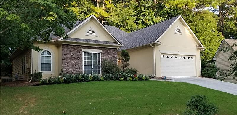 Lovely well maintained ranch home. Sits on Culdesac lot. Entry foyer opens up to a sunken Family Room with vaulted ceiling and Fireplace and new hardwood floors in common areas which is overlooked by Kitchen with breakfast area and granite countertops. Separate formal Dining Room. The spacious owner's suite with a private walk-in closet, a tray ceiling, and a private patio. The Owner's bathroom has a separate garden tub and separate shower, double vanity. There are 3 other bedrooms sure to please the pickiest buyers and a full bathroom in the hall. The laundry room off the garage. The original owner has recently replaced the hot water heater. All of this near Hwy 78 and in the shadow of Stone Mountain Park in popular Dockside at Waters Edge subdivision (featuring swim/tennis/clubhouse) boasting a 140-acre lake and amenities. 2019-10-15