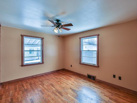 This conveniently located 2+ bd 2 bath 2 car garage home sits on a corner lot with almost a quarter acre! Fenced back yard, hardwoods under carpet, oil forced air furnace, metal siding. Full partially finished basement set up for indoor gardening with office space/3rd bedroom and laundry. Air Conditioning set up for you to bring your unit. Garage set up for woodworking. Stores, gas, freeway, groceries only blocks away. Just all around solid build! This one will go fast!
