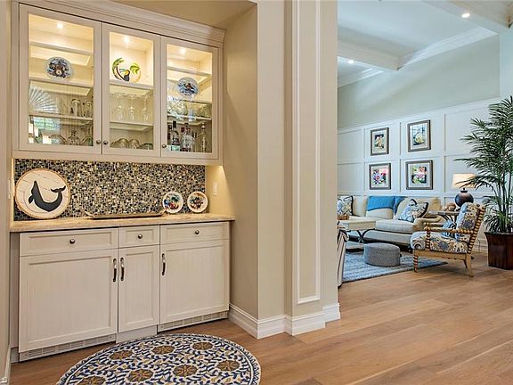 H.15749 - This beautifully renovated home offers professionally appointed coastal decor with an open floor plan and sunlight bright spaces all overlooking long lake and expansive golf course views. The warmth and peace of mind are felt as soon as entering the door. European white oak plank flooring blankets the main living spaces, which nestle under soaring ceilings. All room sizes are generous and inviting while finish details define the varied spaces as do large windows, transom windows and French doors. The inviting outdoor oasis with pool, spa, sun-filled deck, gas grill and comfortable under-roof lanai space combine to provide the much sought after luxurious Florida life style. This is all enhanced by the desirable community of Pelican Bay with its beach front restaurants, 2 tennis facilities, fitness and community center. The optional Golf Club at Pelican Bay offers world class facilities.