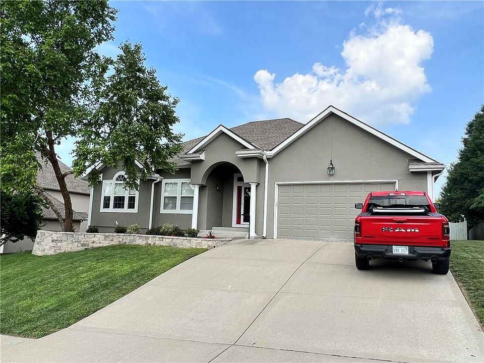 Beautiful 3 bedroom, 2.5 bath ranch home with many updates! Separate MBR from the other bedrooms! Beautiful master bath with separate tub and shower leads you to a spacious walk-in closet. New lights in 2022. NEW HARDWOOD FLOORS installed in great room, master bedroom and 2nd bedroom in 2022! New carpet in 3rd bedroom! NEW INTERIOR PAINT in 2022! New granite countertops! Large Pantry in Kitchen area that is open to formal Dining Room with raised ceiling and Living Room. New tile floor and shower in hallway bath in 2022. Landscaped yard is pretty private and is level and fenced in! HOT TUB STAYS! Covered patio that has been expanded with pavers and some hardscaping. Front of home features a new beautiful retaining wall and landscaping! 1 year old refrigerator in kitchen and washer and dryer stay! Unfinished BASEMENT is a craftsperson's dream with a lot of space for tools or tables! Tons of outlets including a 220.