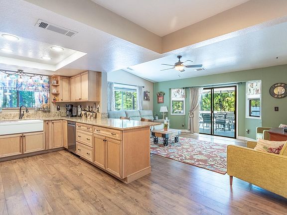 Escape to Woodridge Lake Estates! This charming 3-bedroom, 2-bath home is nestled on 3 pristine acres and offers the ultimate in private lake access and peaceful mountain living. Step inside and be welcomed by a tiled entry that leads to the formal living room, centered around a cozy wood stove. The heart of the home is the entertainer's kitchen, featuring quartz slab countertops, custom cabinets, and a farm-style sink. This space flows seamlessly into a breakfast bar, the family room, and a formal dining area, making it perfect for hosting. Everyday convenience is provided by a dedicated laundry room and an attached 2-car garage. The outdoor living space is a true retreat, with an expansive wrap-around deck and meadow view, ideal for entertaining. Enjoy the durability of a metal roof and carport, while a fenced garden, manicured lawn, and mature trees create a tranquil private setting. This gem showcases true pride of ownership and offers timeless appeal.