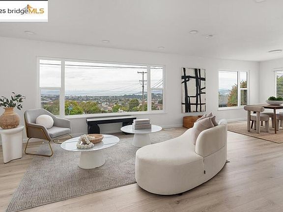 Welcome to this beautifully updated 3-bedroom, 3-bath home with ++bonus space and panoramic views of San Francisco, the Bay, and two iconic bridges. Step inside and be instantly captivated by the sweeping vistas from the open-concept living and dining area, where blonde laminate floors, an inviting fireplace, and oversized picture windows create a warm, light-filled space perfect for relaxing or entertaining. The brand-new kitchen is a chef’s dream, featuring quartz countertops, a breakfast bar, soft-close cabinetry, a new range with island canopy hood, and a separate prep area. It flows seamlessly into the family room, which opens to a private covered patio —ideal for hosting gatherings or enjoying peaceful evenings outdoors. Upstairs, you'll find three bedrooms, including a primary suite with a walk-in cedar closet and a modern ensuite bathroom. The two additional bedrooms share an updated hall bath with a new vanity, lighting, mirror, and a shower over tub. Downstairs, a private bedroom suite with its own entrance, cozy fireplace, and full bath offers a perfect setup for an in-law suite, bonus family room, or a dedicated home office. The charming front patio adds curb appeal and provides easy access to this versatile space.