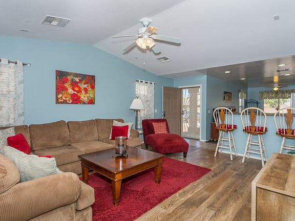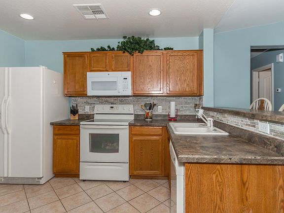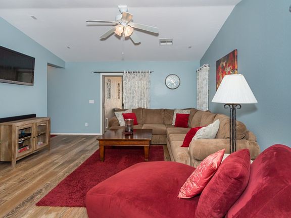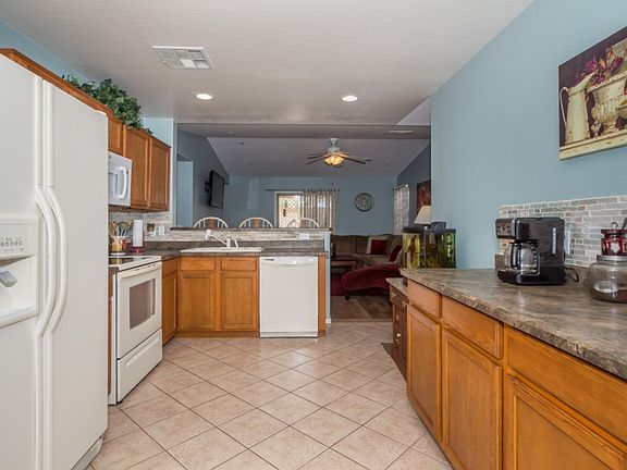 Beautiful contemporary home with adorable landscaping front and back! This extremely well maintained home is one of a kind! Home features a split floor plan with a spacious living room and wood like porcelain tile throughout. Incredible open kitchen with plenty of storage, tile floor and roomy pantry perfect for the entertaining and the chef in you! Home has gone through Major Renovation in 2015 including carpets in the bedrooms, flooring, interior paint and new exterior paint in 2016. Enjoy the beautifully large landscaped backyard with a great covered patio; perfect to BBQ with friends or just relaxing around in the evening. Backyard also has no rear neighbors, includes a private fenced dog run for that special pet and automatic Drip system. Home sits in the Highland Ranch