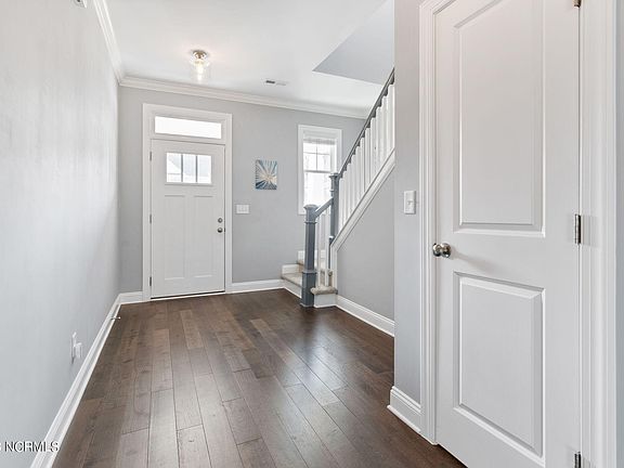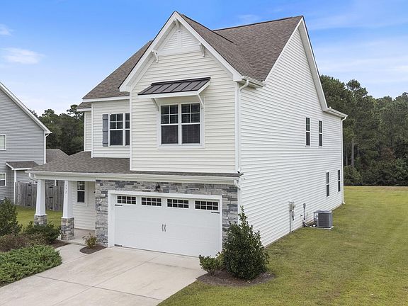This gorgeous 4-bedroom, 2.5-bathroom is a 70West built home located in Peyton's Ridge, one of Onslow County's most eagerly sought-after communities in Hubert. Features of the home are high-end finishes like the wood flooring, crown molding, coffered ceilings, soft close cabinetry, stunning countertops, glass subway tile backsplash, and an oversized kitchen island with additional seating. On the second floor, you'll enjoy the flex space that separates the main bedrooms from the remaining guest bedrooms. This space could easily be used as a media room, home office, or a homeschool room. The master bedroom includes a spacious bathroom with individual oversized vanities, a large shower and a huge walk-in closet. The spacious guest bedrooms are opposite the flex space. With a large indoor and outdoor space and MOVE-IN ready, this home is sure to not last long on the market. Check out the 3D Tour for a more personal experience of this home. Some photos are digitally altered.