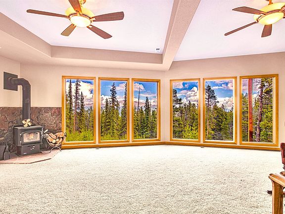 The home features two separate living spaces, each with its own stove—wood-burning on the lower level and gas upstairs—ideal for cozy mountain evenings. The primary bedroom offers a massive walk-in closet and convenient access to an an oversized 5-piece bath. With 2 bedrooms, 2 full baths, a dedicated laundry/utility room, and an oversized 2-car detached garage, the layout is both functional and welcoming.Outdoor living is a highlight, with a covered porch and wraparound deck designed for entertaining or quiet moments of relaxation. Surrounded by towering trees, the property offers privacy while still being close to amenities. Breckenridge is just 40 minutes away for world-class skiing, and Fairplay is only 10 minutes for everyday needs.