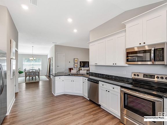 Under Construction Beautiful Beaches are in your near future! Just 20 minutes to the beaches. This home is located in the center of Foley,with shopping, entertainment, and easy 2-minute access to the beach express or Hwy 59. This is a 4-sided beautiful brick 4 Bedroom 2Bath home with a split floor plan featuring a living room dining room combo with high airy 10ft Great room, Kitchen Dining room ceilings. A Kitchen with tons of cabinet space and granite countertops and stainless appliances. A walk-in pantry with light. This stunning primary bedroom has a lovely tray ceiling with extra flush mount lights; a walk-in closet and the master bathroom with a double vanity, and a separate water closet. Luxury EVP flooring throughout with carpet in the bedrooms. Spacious 2-car garage. The seller also provides Termite protection with a renewable bond. Premium hurricane fabric shields. Digital multimedia box. Buyer to verify all information during due diligence. DirectionsFrom Hwy 59, turn east on County Rd 20, turn north onto South Juniper Street, turn right onto Mayflower Drive, left onto Plymouth Please note, contracts are written on Adams Homes' forms and require a pre-approval letter and $1000 in earnest money payable to Adams Homes. Model open daily: Sunday - Tuesday 12 p.m. - 6:00 p.m. , Wednesday - Friday 11 a.m. - 6 p.m. Saturday 10 am - 6 pm.USDA eligible. Builder reserves the right to modify the interior and exterior design, specifications, locations, sizes, design features and prices of the homes. Modifications may vary by home and are subject to change without notice. All dimensions are approximate and can vary. Photos, finishes and colors shown are approximate representations
