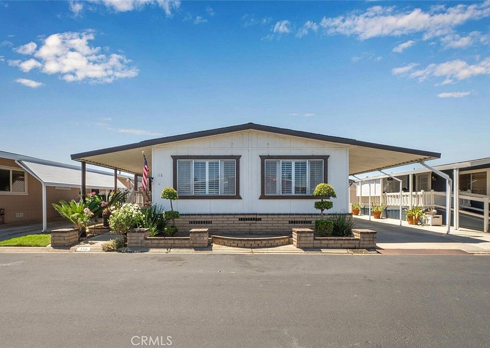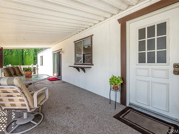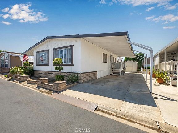 If you're looking for an affordable, comfy, well loved 55+ home that you'd like to customize to your tastes, this is it! This well laid out floorplan offers a living room, and family room, and plenty of light. The living room features white plantation blinds across the entire wall. The primary bedroom offers a deep soak tub en suite, and lots of closet space. The covered carport entry has both stairs, and an electric wheelchair ramp. The unit has two stair entries-parking space is connected to the mud /laundry room. Enjoy breakfast, lunch or dinner, and fresh air outside on your covered patio area in this quiet community just across from Villa Park. New roof replaced in 2024. Feel free to enjoy a large, well maintained recreation room at the clubhouse. Come play games, billiards, or just relax after a dip in the pool, or spa!