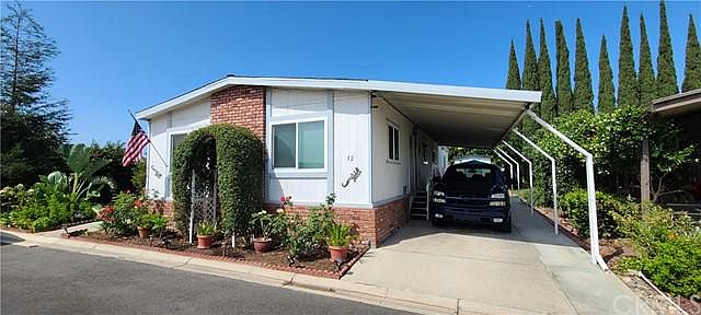 Fantastic "Madison" mobile home in the beautiful 55+ community of Santiago Creek in the City of Orange! This is a double-wide 1440 square feet with an add on enclosed porch bringing the total square footage to around 1600 square feet! This 2 bedroom/2 Bathroom home has many upgrades & features including a newer AC & water heater, upgraded double pane windows, large indoor laundry area, spacious kitchen with granite counters & dining area, large family room with a brick wood burning fireplace, and spacious oversized bedrooms with built-in's! Clubhouse is right down the street and is very active within the community featuring a banquet area, pool hall, media/card room, and a community pool & spa too! Space rent: $1350/month