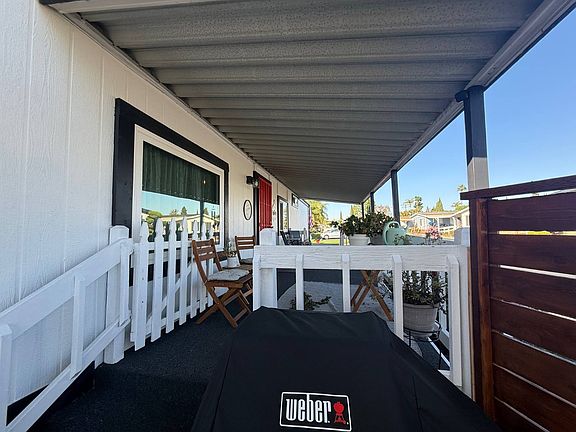 Beautifully Renovated 3-Bed, 2-Bath Home in Premier 55+ Community! Welcome to this stunning 3-bedroom, 2-bathroom mobile home boasting 1440 sq ft of stylish and comfortable living space in a highly desirable senior 55+ community. With a monthly space rent of $1,525, this home has been thoughtfully upgraded throughout for modern living and peace of mind. Step inside to find brand-new Porch, fresh interior and exterior paint that gives the home a bright and inviting feel. The spacious kitchen is a chef's delight with Newer Appliances, Loads of Cabinets. Enjoy year-round comfort with a new furnace and AC system, all dual-pane windows, and upgraded plumbing for durability and energy efficiency. . Outside, the home shines with automatic sprinklers, a large Corner Yard with grass, and wrap around corner porch perfect for relaxing or entertaining. Perfectly located Don't miss your chance to live in this move-in ready gem located in a tranquil, well-maintained community. Schedule your tour today! And welcome to Santiago Creek Estates.