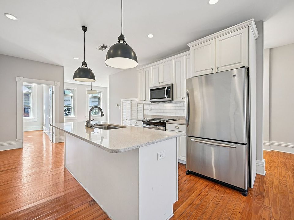 This unique 1 bedroom has lots of upgrades with historic charm. There is a bonus room that could be used as an office. The kitchen and bathroom have been completely remodeled. The kitchen boasts quartz countertops, stainless steel appliances, and soft-close cabinets with an island. Beautiful hardwood floors. Washer/dryer included. Parking lot $100/month. Parking garage $50/month. City street parking $25/year. No Airbnb offers accepted.