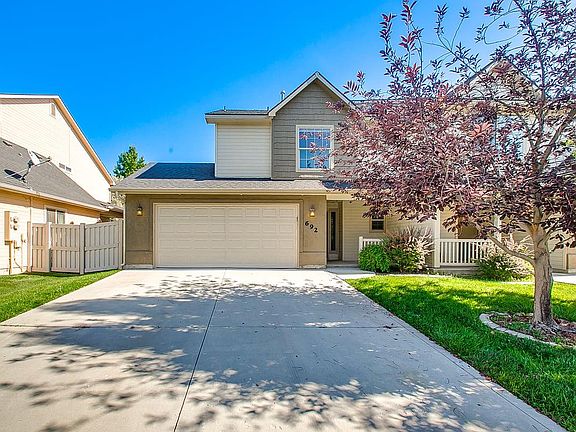 Fall in love with this well-maintained two-story rental in one of Eagle's most sought-after neighborhoods! The open-concept main level features a bright living room with a cozy corner fireplace, hardwood floors, slab granite countertops, custom cabinetry, and stainless steel appliances perfect for entertaining or relaxing in style. Upstairs, you'll find all three bedrooms, including a spacious primary suite with a dual-sink vanity, large soaker tub, and separate shower. Enjoy outdoor living with a covered patio and a fully fenced yard ideal for weekend BBQs or unwinding after work.Extras include a two-car garage, and lawn care is included so you can spend more time enjoying Eagle and less time doing yard work! 12 month lease.