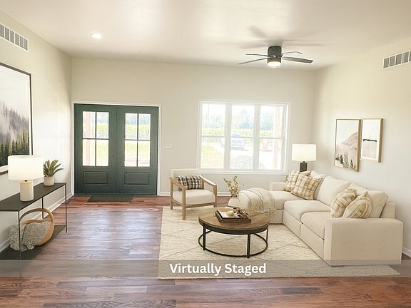 Welcome to this stunning 1,800 sq. ft. new construction home-where every detail has been thoughtfully designed for comfort and style. Featuring 3 spacious bedrooms and 2.5 baths, this home offers an open, split-bedroom floor plan with soaring 10-foot ceilings. The chef's kitchen is a showstopper with a massive island and sleek quartz countertops, while the primary suite includes a spa-like bath showcasing quartz surfaces, a soaker tub, walk-in shower, and oversized closet. The half bath also features quartz finishes, while the second full bath is beautifully appointed with granite. You'll also enjoy the convenience of a main-floor laundry room and the practicality of a 3-car garage with 8-foot doors and 11-foot ceilings-perfect for your truck or SUV. Outside, two covered porches invite you to sip your morning coffee and relax in the fresh air. And with a full basement ready to finish and over an acre of land, you'll have plenty of room to grow and create the lifestyle you've been dreaming of. Don't miss your chance to make this beautiful home yours-call today to schedule a showing!