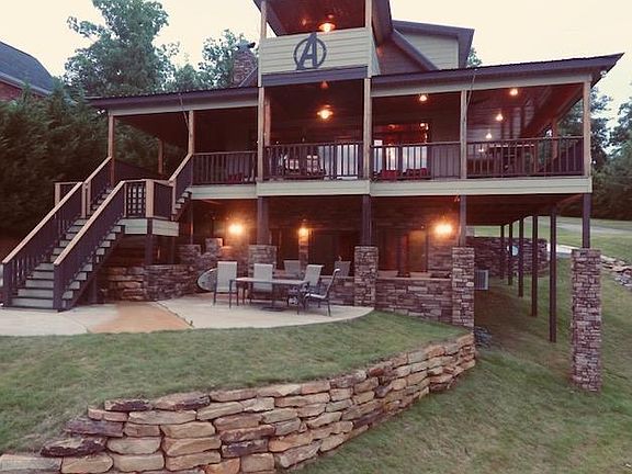 SMITH LAKE HOME in AL for sale, Main Body, 5BR3BA, Double kit, granite custom Cab. Wood FP main level, gas FP down, 1,500 sq ft. of Covered Porch. Entire third floor is a Master Suite including covered deck with amazing views. Two-slip, all aluminum boat dock with large swim pier. Foundation is ready for garage to be built. Call for more info today.