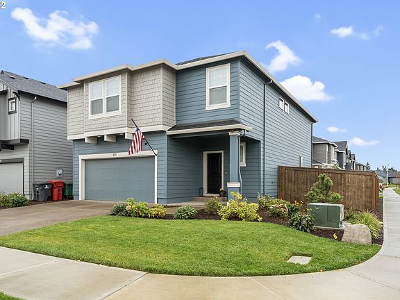 Beautiful 4 bedroom, 2.5 bathroom home in Woodburn's desirable Smith Creek neighborhood! This two-story craftsman is better than brand new! Featuring air conditioning, a fully fenced backyard, upgraded lighting fixtures and hardware throughout! It boasts vaulted ceilings, new stainless steel appliances and quartz countertops! Upstairs you will find a laundry room with an extra attached storage space, lovely primary suite with walk-in closet and huge bonus room. A MUST SEE on a large corner lot!