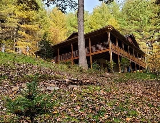 Stunning cabin style home in beautiful Upper Sawyer's Creek area! This home has been meticulously maintained and offers all necessary amenities and more! Drive up to the main level or lower level for easy access, spring fed pond on the property and mature hardwoods make for an amazing fall view from the wrap around porch. Master bedroom on main level, Central electric heat pump and wood burning insert, maple floors on main level and tile bathrooms, Corian countertops in kitchen and bathrooms, and vaulted ceiling in living room. Over 5 acers unrestricted land with this residence for the potential of expansion or other home sites. Call today to view your new mountain retreat!